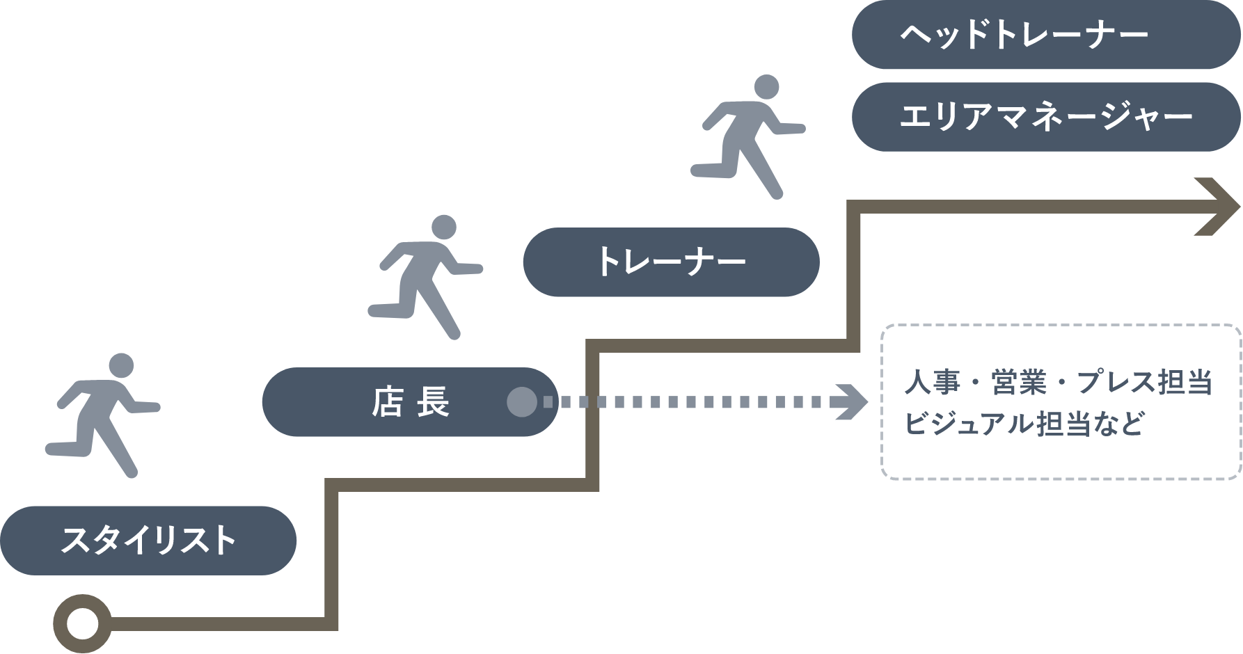 全ての職種がスタイリストの仕事を経験し、ステップアップしていきます。