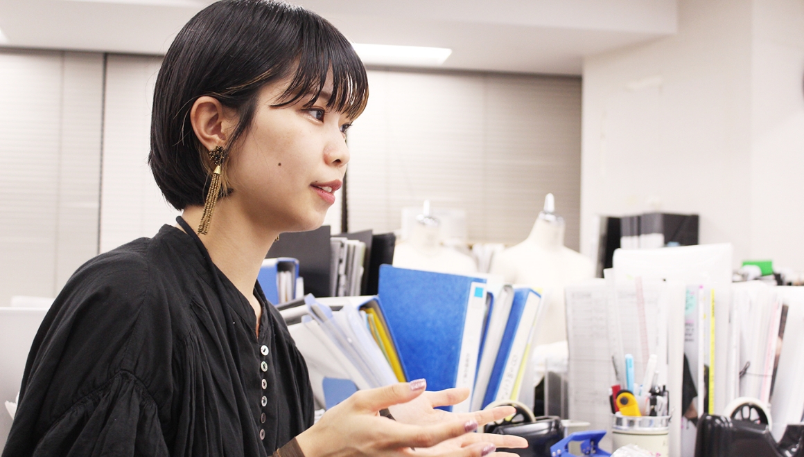 服のデザインをすることは小さな時からの夢でした。特にニットが大好きで、今の仕事は本当に天職だと感じています。現在はアシスタントデザイナーとしてデザインを書き溜めている段階ですが、幼少の時から目指していた職種で働けることに喜びを感じています。またチームで商品を作るプロセスも含めて毎日を楽しんでいます。